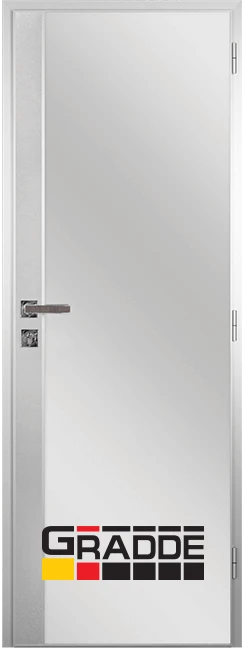 Нова серия алуминиеви врати за баня, на която външната страна се предлага във всички цветове на Граде. От страната на мокрото помещение има голямо огледало и малка вертикална част, която е разположена от страната на бравата и е в цвета на крилото. Ако вратата е подложена на обливане с вода предлагаме опция вертикалната част от страната на бравата да бъде с алуминиева лайсна.